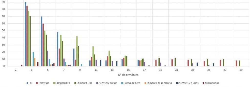 Ahora bien, existe un tipo de consumo eléctrico o carga no lineal, que se genera sobre frecuencias de la onda fundamental, ya sea la de tensión o la de corriente.