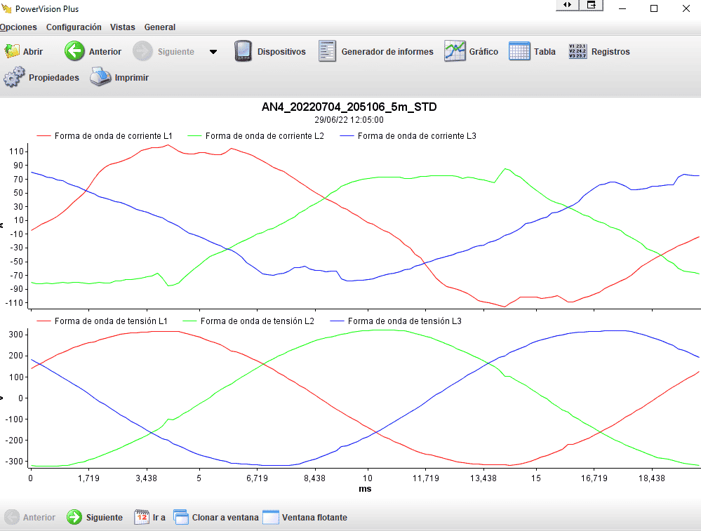 • Visualización de las formas de onda, estudio de armónicos o medida de flicker entre otras opciones